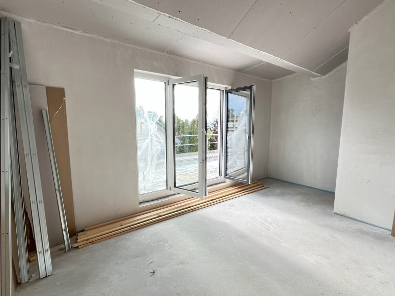 Die Dachgaube sorgt für ein angenehmes Raumklima und ein bodentiefes, dreiteiliges Türelement maximiert die Lichtausbeute. Das Highlight ist die Dachterrasse mit unverbaubarem Fernblick.