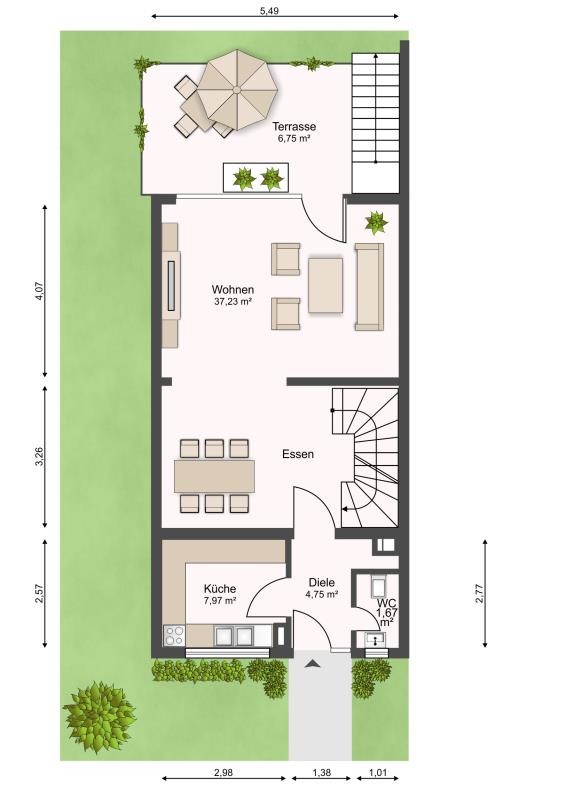 Die durchdachte Raumaufteilung eignet sich ideal für Familien mit 4 bis 5 Personen und gliedert sich wie folgt: