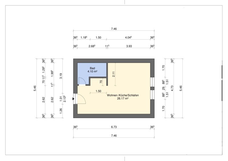 Das helle Einraum-Apartment befindet sich im zweiten Obergeschoss einer großzügigen Wohnanlage mitten in der City.